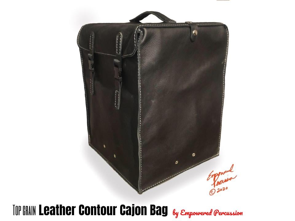 Top grain leather and wax canvas cajon travel-bags handmade by Empowered Cajon co. We are about quality vs. quantity and design with both sophistication and an embracing of the viability and utility of hand picked luxury materials. It doesn't get anymore hand crafted than this!